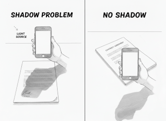 You hover over the table with your smartphone, trying to catch the document in the frame straight... and you see a huge shadow from your hand and phone right in the middle of the text.