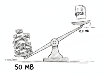 The problem is that modern cameras shoot too well. One high-resolution document photo can weigh 5–10 MB. A batch of 10 sheets is already 100 MB. No corporate email will let that through.